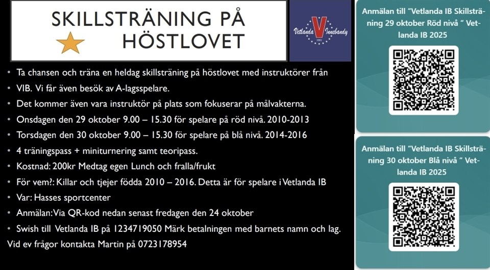Fyll i din e-postadress för gratis uppdateringar om Vetlanda IB P-12
