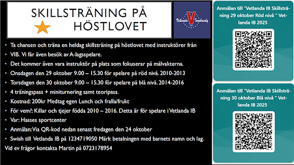 Finns möjlighet för extra träning på höstlovet för de som har möjlighet.
