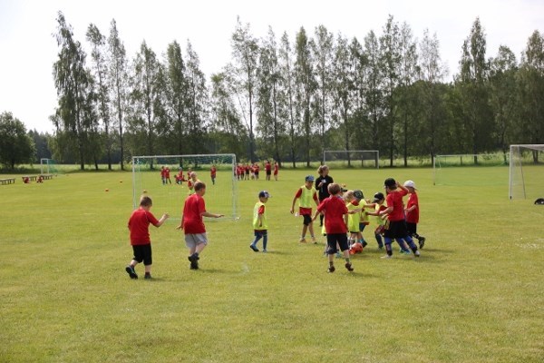 Hej alla! Efter lite premiärnerver hos undertecknad satte så Västerljungs IFs fotbollsskola 2014 igång. Det var 51 barn anmälda. Två barn ytterligare anslöt under dagen, någon var tyvärr sjuk men kommer kanske i morgon. Vi hade 11 ledare och ett gäng med föräldrar som hjälpte till runt omkring. Kl 0900 började inskrivningen. Det gick snabbt och barnen fick under tiden pila iväg till sina respektive ledare. Där började ledarna och spelarna med att få tröja, boll och flaska och berätta vilka man var. Sedan började själva fotbollsskolan. Solen sken sedan allt intensivare på oss alla. Efter en timme med teknikövningar så var det dags för dagens första matintag. Smarriga mackor med massor av pålägg. Och så kaffe för alla vuxna! Efter mackan såg matcherna dra igång. Något gäng varvade med att köra teknikbanan och några kastade medicinbollar. Här och där fick vi räta ut något gräl men på det stora hela flöt det på fin-fint. Strax före kl 1200 så serverades dagens lunch. Det var Lina Lindqvist Catering här i Västerljung som hade brassat en fullständigt fantastisk kassler och som serverades under Ann-Sofie Alberg tryggaledning med gott stöd av bla Johanna och Sandra. Trots stekande sol och proppmätta barn, drog fotbollsskolan igång sitt eftermiddagspass. De äldre barnen från de två grupperna mötte varandra och på ett annat ställe var det ledare som mötte barn. De lite yngre barnen tog det lite nättare och kollade på matcher och käkade frukt. Vid ettiden sade vi hej då till barnen födda 08 och 09. Och vid tvåtiden sade ledarna hej då till alla stora barn efter att alla hjälpts åt att samla ihop alla saker. Sammantaget kan vi summera en mycket lyckad dag där sol, barn, ledare och föräldrar sken ikapp. Såklart föll någon tår och någon blev arg. Men vi tar nya tag i morgon! Än en gång tackar vi våra sponsorer som gör att vår fotbollsskola kan vara både billig och hålla hög kvalitet. Tack Lions, Camfil och Bergs Gård Mark & Bygg! Välkomna! Västerljungs IF