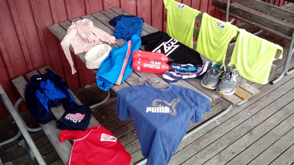 Glasögon, skor, jackor och kalsonger! Mycket glömdes kvar. Allt ligger på altanen nere vid Norrbyvallen under torsdagen för avhämtning.
