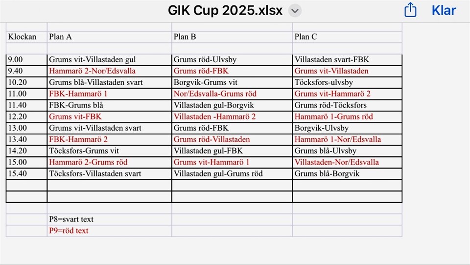 Spelschema och samlingstid Grumscupen lördag 28/6