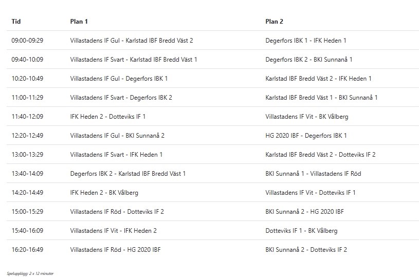 Här är spelschemat för Villa cup. Det finns ett separat inlägg där ni kan se vilket barn som spelar i vilket lag.