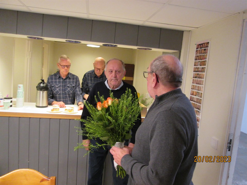 Lokalen blev fullbokad inför årsmötet, kanske för att det vankades semla efteråt samt gratis skytte. Inga större förändringar i styrelsen, men en del blev det. Bengt Johansson avgick ur styrelsen efter många år avtackades med en blomma Bengt ersattes av Lennart Falk i styrelsen. (se foto nedan) Evert Hallberg ersatte Lennart Falk som revisor tillsammans med Mats Kindman. Per-Inge Helander avgick ur festkommittèn och som att desponera föreningens kontokort, Lage Elofsson ersatte Per-Inge. Mötet avslutades, nu var det dags för kaffe och semla.