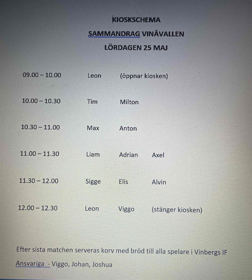 Här är Kioskschemat för Sammandraget på lördag. Vädergudarna lovar fint väder, så vi ser fram emot en härlig fotbollsdag P-2015 23 maj 2024 9kommentarer