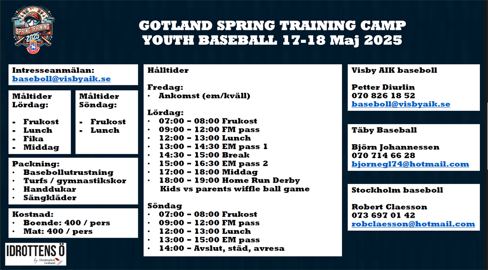 17-18 Maj 2025 går den första Gotland Spring Training Camp av stapeln.