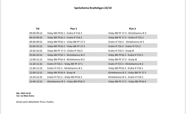 Lag 1 skall samlas 10:50 och ingen annat. Miss från min sida.