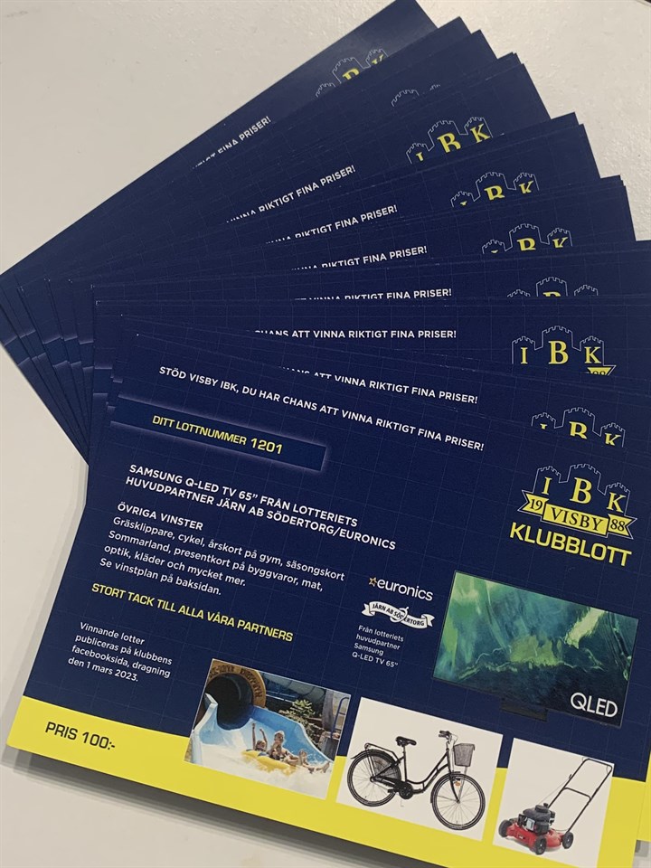 IBK KLUBBLOTT Hej! På dagens träning har vi börjat dela ut årets försäljning av IBK KLUBBLOTT! Alla spelare får 5 lotter att sälja, priset är 100kr st och intäkterna går till Visby IBK’s verksamhet. Swisha gärna omgående (men absolut senast 25/1 2023) 500kr till 0735137035 och skriv barnets namn! // Ledarna