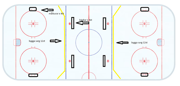 Vi behöver hjälp av några föräldrar att bygga ihop lite sargbitar på isen samt ställa ut 4 bänkar för avbytare, se bifogad bild.