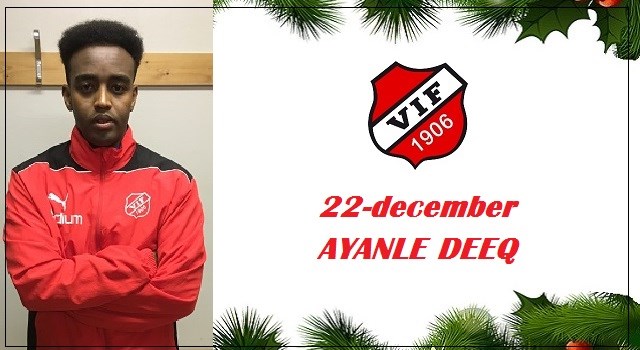 God morgon Vislanda Nu börjar vi så sakteliga närma oss slutet på årets julkalender, men några luckor har v ikvar att öppna i alla fall. Idag är vi tillbaka i spelartruppen!! Här har ni ... Ayanle Deeq V ihar givetvis ställt lite frågor till Ayanle också.. Favoritlag i fotboll? Arsenal Var på planen hittar vi dig, back - mittfällt - anfall? Yttermittfältare Intresse utöver fotboll? Tv-spel Har du något nyårslöfte? Det tänker jag hålla hemligt.. Tack för svaran Ayanle.. Vi ses igen imorgon alla följare.