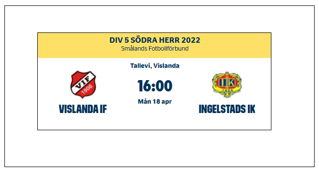 • Vislanda IF - Tolgs IF 19:00 ikväll!