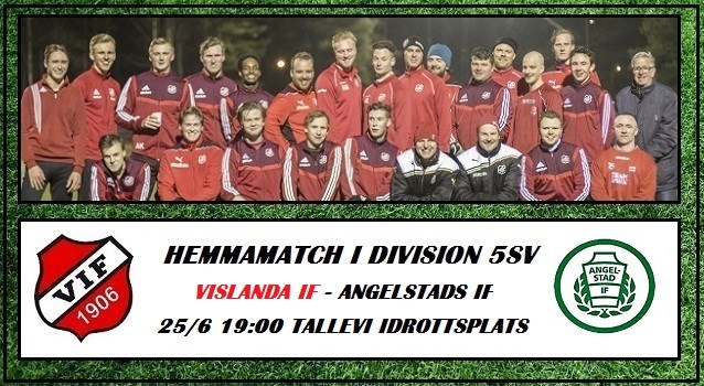 God eftermiddag Vislanda Då har det blivit dags att vända runt serien och välkomna Angelstads IF till Tallevi för match i division 5. 2019-06-25, 19:00 Tallevi Som vanligt är kiosken öppen och grillen tänd. Varmt välkomna!!
