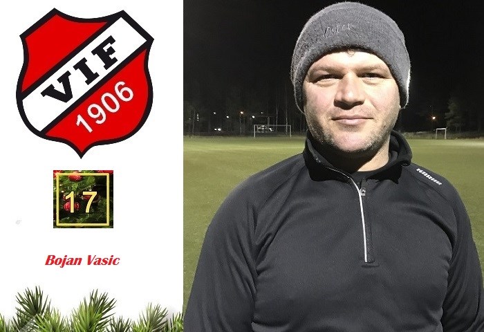 God morgon alla följare Idag har vi ju exakt en vecka kvar till julafton, vi har dessutom vinterväder, låt oss hoppas att snön stannar ett tag till. Ny vecka, nya möjligheter och framför allt nya luckor i kalendern. Uppdaterad spelartrupp! Vi drar igång direkt med lucka nummer 17 Vislanda IF är stolta att kunna presentera Bojan Vasic Civilstånd? 40 år gift och två barn. Vilken känd målvakt är du mest lik? Buffon, han är dessutom lika gammal som jag. Vem är världens bästa fotbollsspelare? Nemanja Vidic och Robert Carlos Favoritlag? Benfica Vad måste man äta under julen? En helgrillad gris. Konstgräs eller naturgräs? Naturgräs Beskriv Vislanda IF med 3 ord. Lite sämre än Barcelona Ja sannerligen, men inte så stor skillnad nu tycker vi hehe. Tack för svaren Bojan, alla följare.. vi ses igen imorgon.