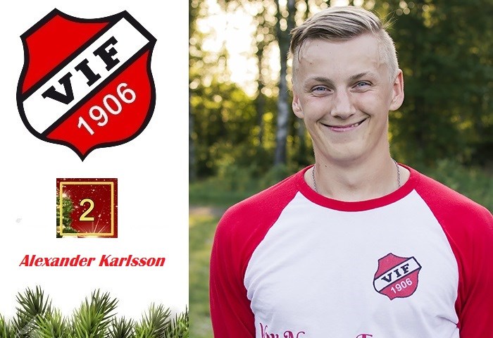 Dags för lucka nummer 2, Vislanda IF är stolta att presentera.... Alexander Karlsson Är du singel? Trots mitt agg mot ärkerivalen IFK Grimslöv har jag ju kärat ner mig i min flickvän Maja som har den största ärkerivalen Gösta Berg som far. Men man kan ju som sagt inte välja sin svärfar. Vilken position i laget har du? Väldigt svår fråga då jag fått lira på många olika positioner de senaste åren, jag duger tydligen inte någonstans. Vilken fotbollsspelare är du mest lik till spelsätt och/eller utseende? Skulle ju vilja säga Zlatan, men det är nog bara i mitt eget huvud. Grankvist kanske? Bäst och sämst klädsmak i laget? Om skägg ingår i klädsel så säger jag Martin Aronsson han kan se väldigt ovårdad och skrämmande ut. Även på planen är han skrämmande. Snyggaste klädsel får jag säga att Andreas har, han har bra koll på mode och kläderna sitter mycket bra på hans muskulösa kropp. Vad äter du aldrig på julbordet? Nubben, den är mycket enklare att dricka! Spelartrupp!!