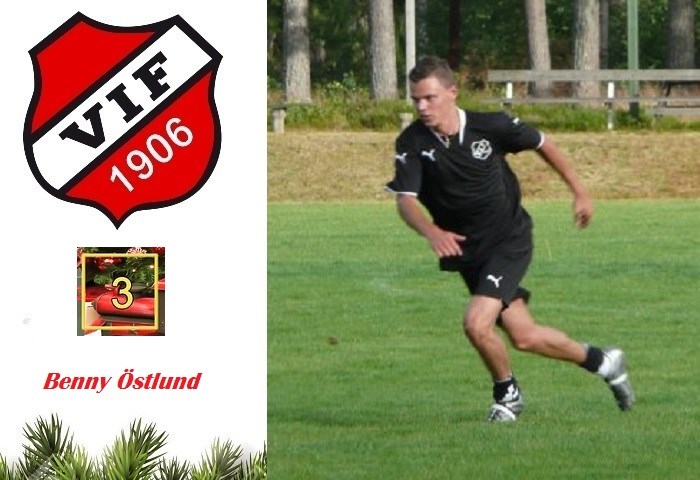 God morgon Då var det dags att öppna lucka 3 i kalendern. Här har vi en spelare med målsinne, vår egen guldfot. Uppdaterad spelartrupp! Vislanda IF presenterar stolt... Benny Östlund Civilstånd? 31 år, sambo och 2 barn Vilken position i laget har du? Offensiv målgörare Vilken fotbollsspelare är du mest lik till spelsätt och/eller utseende? Kan typ inga fotbollspelare mer än Zlatan, men vi är inte speciellt lika. Vem i laget tror du löser ett däckbyte bäst, och vem tror du är sämst? Csaba den äldre är nog bäst, får väl ta Mycel som sämst. Vara med i ”På spåret” eller i ”Let’s Dance”? Absolut på spåret! Sommar och sol eller vinter och snö? Sommar och sol Janssons frestelse eller sill? Sill och nubbe!