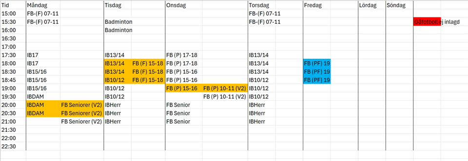 Vi träffas torsdagen den 22 augusti kl. 19.00 för att tillsammans bestämma tiderna i hallen. Det är glädjande att vi nu är fler lag än någonsin i föreningen, med totalt 5 innebandylag och 8 fotbollslag. Det är kul att vi växer som klubb, men det gör också att vi behöver vara extra noggranna med att fördela halltiderna rättvist.