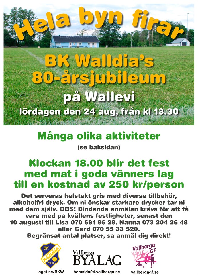 Se här under vad som händer den 24 augusti. BK Walldia 4 jul 2013 0kommentarer