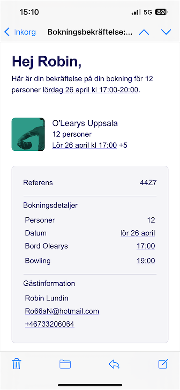 Vi har bordsbokning mellan 17-19. Därefter spelar vi bowling mellan 19-20.