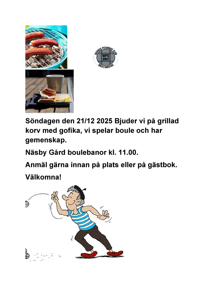 Klicka på bekräftelselänken i det mejl vi skickat dig för att börja ta emot uppdateringar från Wendes Pétanque Club.