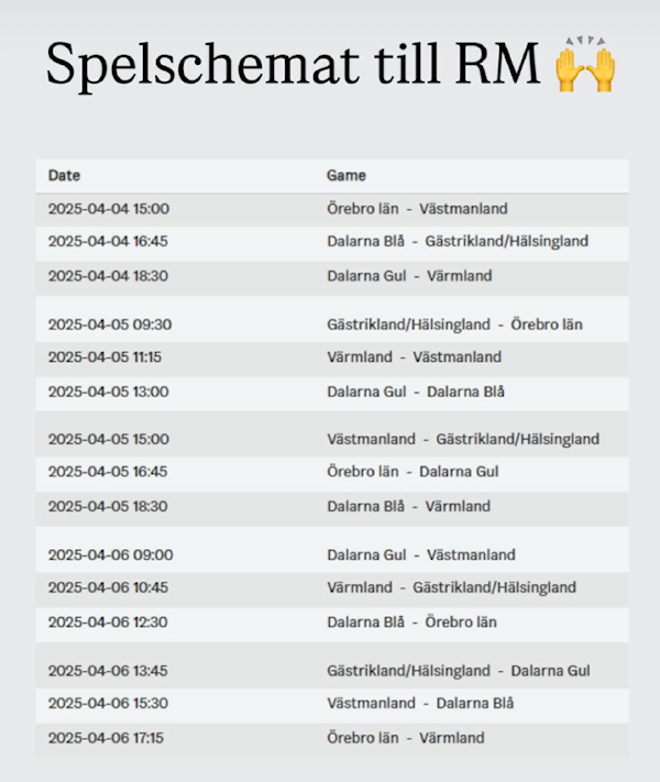 Nu har vi fått uppdaterat spelschemat för Regionsmästerskapet i Sunne (se bild).