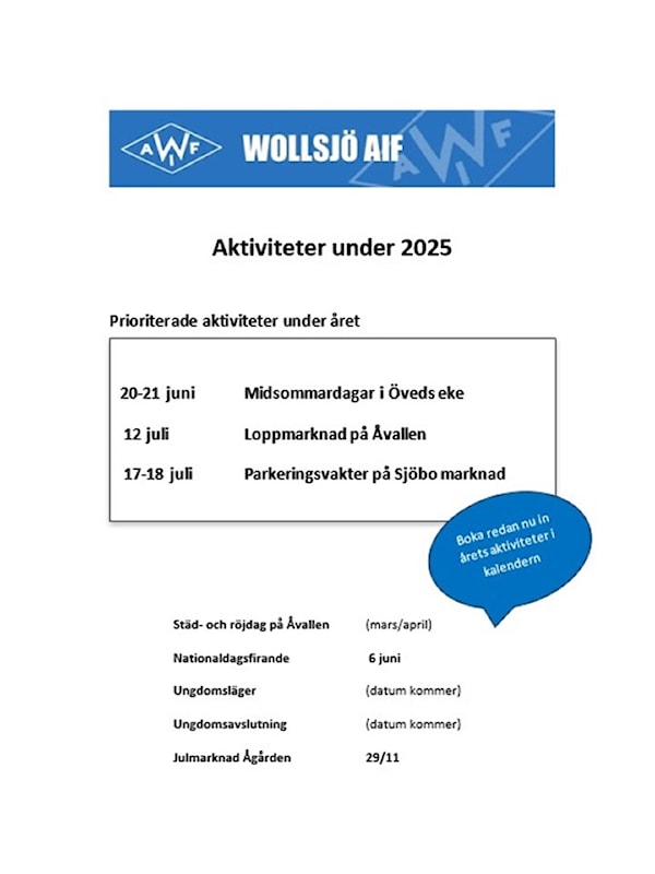 Boka redan nu in dessa datum då föreningen behöver all hjälp vi kan få. Mer info kommer om varje aktivitet när det närmar sig men redan nu finns information ni kan läsa under dokument på denna sidan.