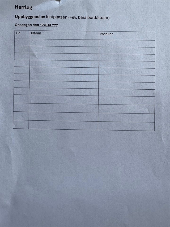 Hjälper till med uppbyggnad av festplatsen,0707976859