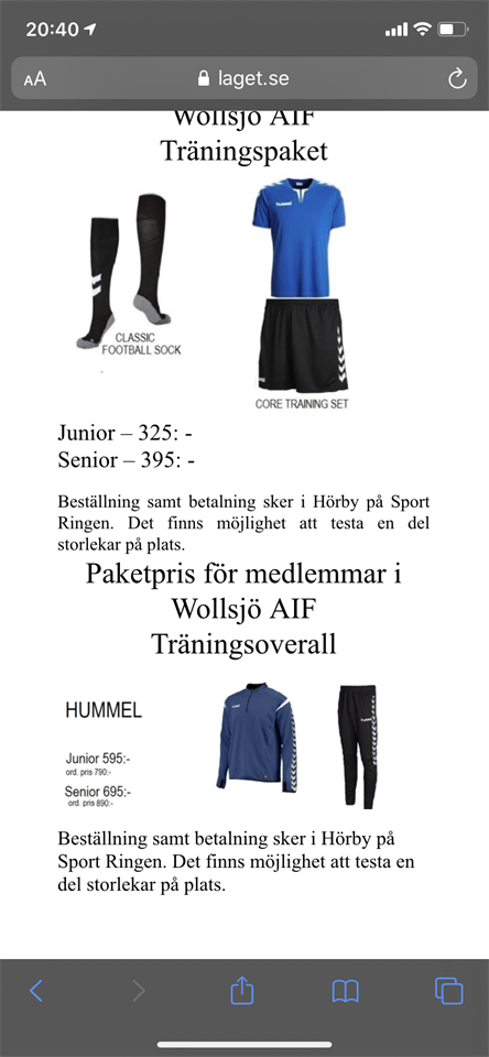 Det kommer NU en ny möjlighet att beställa Wollsjö AIF:s träningskläder/ träningsoverall. Dessvärre kommer det inte finnas så många olika storlekar att prova på plats. De är dock ganska normala i storlekarna och det går kanske att ev prova av någon lagkompis eller liknande. Beställning och betalning görs direkt på Sportringen i Hörby, senast den 9 maj.