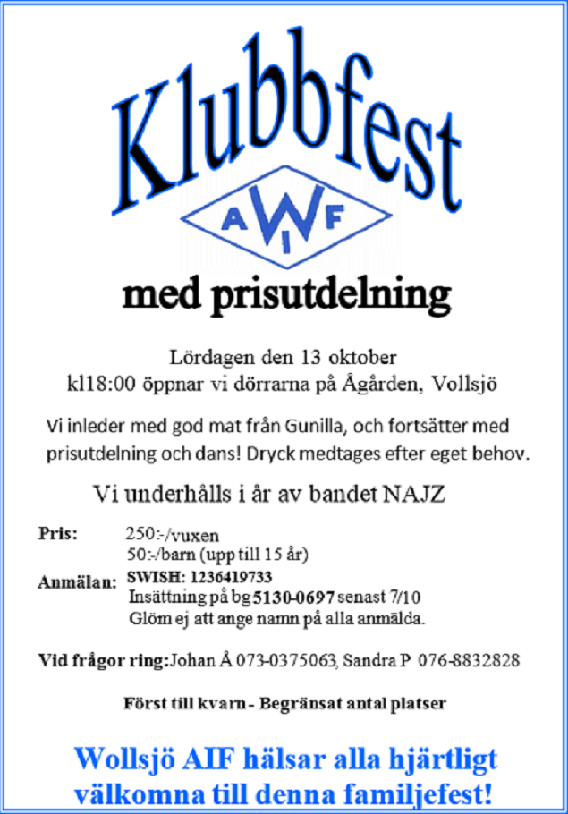 Nu öppnar anmälningarna till årets WAIF-fest. En trevlig tillställning för hela familjen. Se bild för anmälningsinformation. Vi ses där! /Ledarna P-13 18 sep 2018 0kommentarer