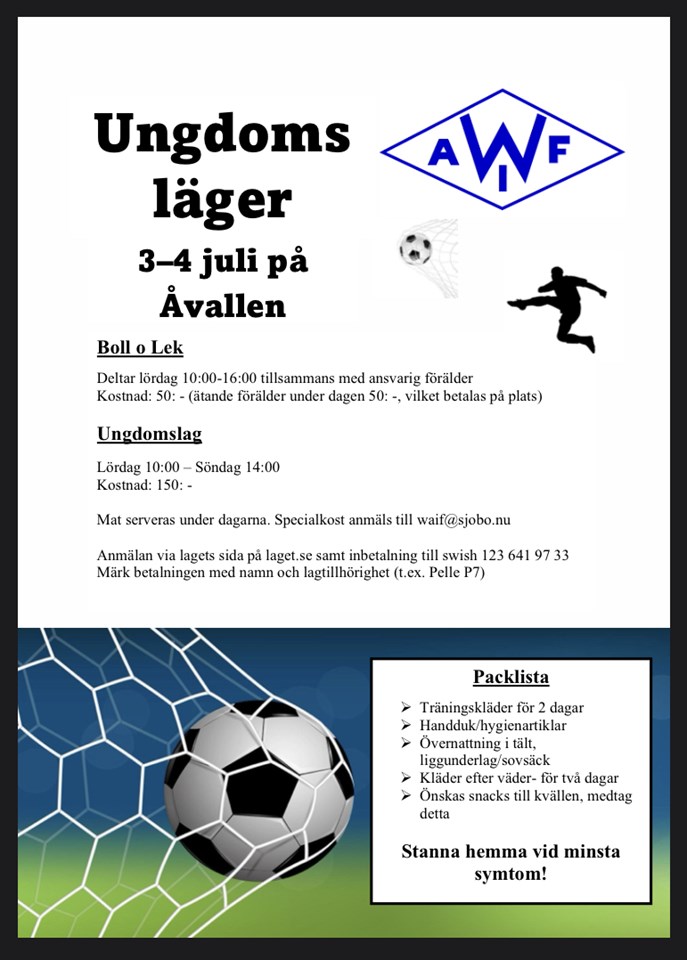 Ungdomsläger för Wollsjö AIF:s ungdomar. Se bifogad bild för mer info. P-13 14 jun 2021 0kommentarer