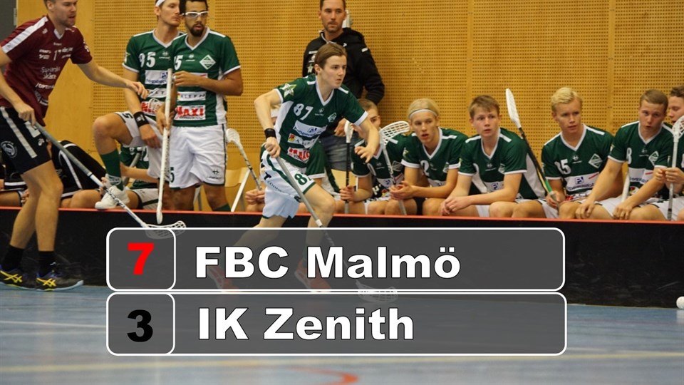 Under lördagen skulle herrlaget ta sig an FBC Malmö på bortaplan. En på förhand tuff, men inte omöjlig, uppgift. På försäsongen lyckades vi besegera Malmö på vår hemmaplan men denna gången fick vi se oss besegrade och fick åka hem med säsongens andra förlust. Efter några timmars bussresande var vi framme i Kirsebergshallen i Malmö. Energin var dock på topp vilket uppvärmningen visade och lovade gott inför matchen. Första perioden är vår klart bästa där vi har ledningen med 0-2 efter ca 8 minuters spel. Malmö hinner reducera men perioden är klart godkänd från Zeniths sida. Men vad som händer sedan är svårt att sätta fingret på. Malmö tar över matchen och jobbar ikapp. Andra perioden vinner Malmö med 3-0. Vi tappar bollar, passar fel och är inte riktigt på tå. Hoppet tänds i början på tredje perioden när Fredric Clywersköld reducerar till 4-3 i numerärt överläge. Men närmre än så kommer vi inte. Även om vi gör ett tappert försök till att komma ikapp så kontrollerar Malmö resterande del av perioden och med tre raka mål slutar matchen 7-3 till hemmalaget. Sammanfattningsvis kan man säga att vi inte kommer upp i samma nivå som mot Varla. Vad det beror på lämnar jag osagt. Vi kan bättre, helt enkelt. Malmö är inget dåligt lag och kanske är det deras rutin från spel i Allsvenskan som fällde avgörandet. Robin Crantz är en sevärd spelare som står för 5 poäng och som ställde till det för vårt försvar. I en något sönderryckt serie placerar vi oss, för tillfället, på plats tre i tabellen men med både en och två matcher mer spelade än övriga lag. Fyra vinster, två oavgjorda matcher och två förluster. Godkänt, men de två förlusterna svider såklart. Skottstatistik 17 - 20 (5-7, 4-5, 8-8) Övrig statistik hittar ni här Den 23e november kommer IBK Lund Elit på besök i Björlandahallen. Ett lag som på förhand tippas knipa en kvalplats. Ett nytt motstånd för oss och en värdemätare om vi ska hänga med i toppstriden. Matchen är, i vanlig ordning, kl 14.00.