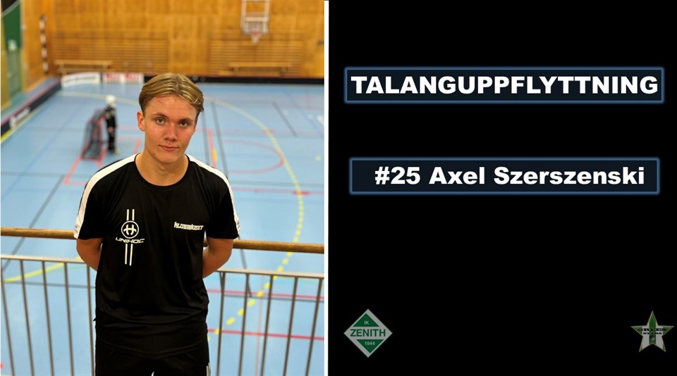 Herrlaget påbörjade sin generationsväxling förra säsongen och kommer nu flytta upp några av våra mest lovande talanger. Näst på tur ut att signa sitt A-kontrakt är 17 årige #25 Axel Szerszenski Axel är även han en av spelarna i vår framgångsrika 06 kull och har gjort stora framsteg de senaste säsongerna. Från att ha varit en tongivande spelare i Västsvenskas Distriktslag i SM till att han förra säsongen debuterade i A-truppen tar han nu klivet fullt ut. Axel blir dessutom en mycket viktigt spelare i årets JAS lag. Tränare Michael Clywersköld om Axels uppflyttning: Härligt att Axel nu tar steget. Han är exakt en sådan back vi behöver, stor fysisk men ändå rörlig och med ett bra spelsinne. I Axel får vi en talangfull spelare som kommer nå långt. Axel om sitt nya kontrakt samt om kommande säsong Det känns väldigt bra att flyttas upp, efter att ha testat på divison 1 spel förra säsongen så känns det rätt att ta klivet för min personliga utveckling. Jag ser fram emot en tuff säsong där jag hoppas bli en viktig kugge i laget och bidra till fina resultat. Härligt Axel, kör hårt nu!