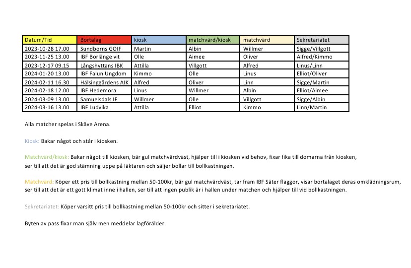 Nu kör vi igång säsong 24/25! Vi vet att det fortfarande är fotbolls säsong för övervägande av våra spelare, så även för oss tränare (då vi är fotbolls tränare också). Och vi ser absolut att man kör klart den sportsäsong man är uppe i. Vi kör igång v 40 med tiderna tisdagar 18:00-19:30 torsdagar 16:15-17:30 Båda i Skäve Arena (Tisdagar - Fel tid på affisch fr föreningen, denna tid som gäller!) Innan dessa tider har vi bokat in måndagarna 16 sept och 23 sept i Skönvikshallen 18:45-20:30 Ska försöka klämma in någon mer tid, ev helg innan vi kör igång. Kommer skicka ut kallelse så vi ser att vi blir ett gäng dessa tider. Serierna är så gott som satta, men de ska bara kikas över för ev krockar då vi kommer köra 2 lag igång tillsammans för killar födda -11 & -12. Vi vet att vi har några som kör 2 vintersport och det är vårt mål att vi ska lösa det på bästa sätt även iår. Det kommer absolut krocka, men det har vi med oss i beräkningarna. Det är fortfarande jag - Maria och Jonas Sellberg som håller i trådarna, med vår vapendragare Magnus Sjöblom. Nytt för iår är att Alexandra Lundblad Persson(Emil P mamma) kliver in för att assistera oss och komplettera oss med sina sjukvårdskunskaper. Har man några funderingar så hör av er, föräldramöte såklart längre fram. Nu kör vi igång en härlig, varm inomhus säsong! /Maria, Jonas, Magnus och Alexandra