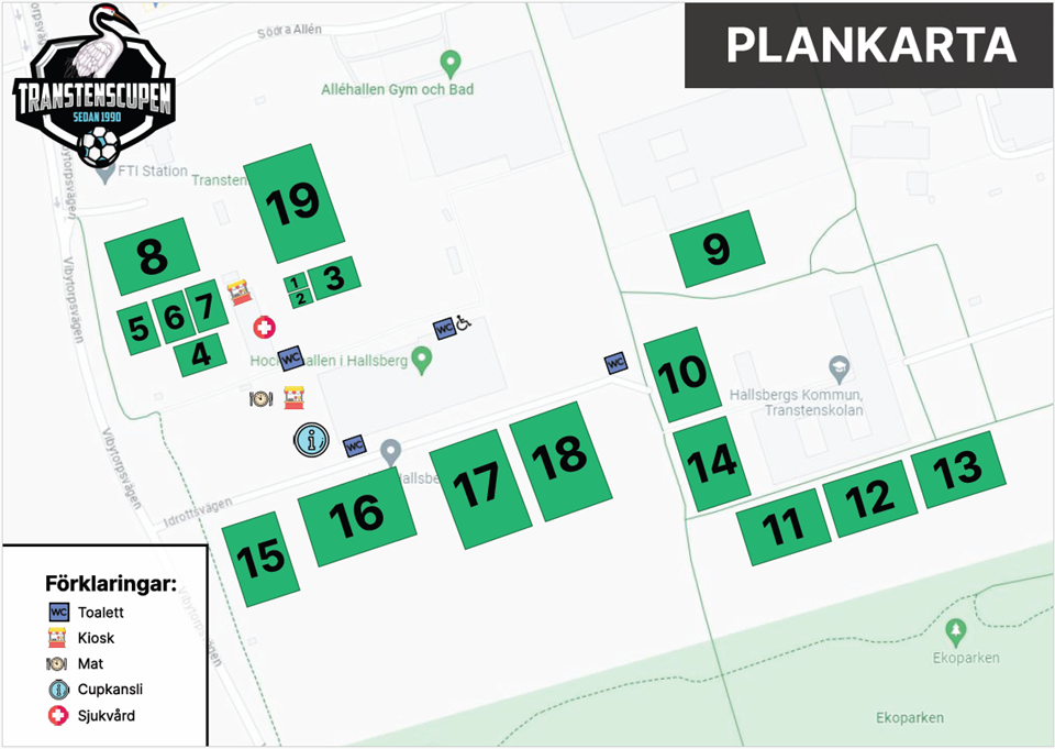 Hej! Nu är lagindelningen klar för Transtenscupen. Vi har anmält två lag och båda lagen spelar fyra matcher var med speltiden 2x15min. Vi räknar med att alla som anmält sig kan delta. Vid ev. förhinder eller förseningar, kontakta ansvarig tränare! Lagindelningen är enligt följande: Lag Svart: Alve, Ebbe B, Elton, Gustav S, Malte, Rasmus, Rufus, Samuel, Theo A, Ville, Zid. Lag Svart har sin första match kl 09:40 och samlas kl 09:00 vid Plan 11. Ansvarig tränare: Anders 073-5992269. Matcher lag Svart: 09:40 Kumla Röd. Plan 11 11:40 Karlskoga Blå 1. Plan 12 13:00 Götlunda. Plan 14 15:00 Degerfors. Plan 14 Lag Grön: Alex, Ebbe S, Jack, Josef, Oliver, Sami, Simon, Theo S, Vidar, Viggo, Wesam. A, B, C. Lag Grön har sin första match kl 09:00 och samlas kl 08:20 vid Plan 8. Ansvarig tränare: Ali 076-5826561. Matcher lag Grön: 09:00 Kumla Vit. Plan 8 10:20 Karlskoga Blå 2. Plan 13 12:20 Hallsberg 1. Plan 9 13:40 Söderbärke. Plan 11 Se även spelschema på: https://cups.nu/s/37c9b468 (länk) Kom i god tid till alla samlingar under dagen. Vi samlas 25min före matchstart vid respektive plan om inte något annat kommuniceras. Det är extra viktigt att killarna får i sig ordentligt med vatten dagen innan cupen och under cupen måste de alltid ha minst en full vattenflaska med sig till match. Vi ser gärna också att alla äter bra frukost/mat inför/under dagen och håller sig borta från godis och onyttiga saker mellan matcherna för att ha rätt energi från första till sista match. Håll utkik på cup-sidan för uppdaterad information. Cupen spelas i anslutning till Transtensskolan och hockeyhallen i centrala Hallsberg. För övriga uppdateringar, håll koll på laget.se och i sms-gruppen! https://transtenscupen.cups.nu/sv/start Nu börjar vi peppen för en rolig och bra cup! :-) / Anders