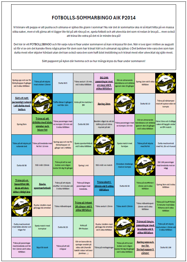• Fotbollsbingo sommar 2024 - AIK P2014