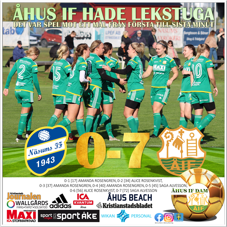 Åhus IF hade lekstuga borta mot Näsum Näsums IF–Åhus IF 0–7 (0–5) Målen: 0–1 Amanda Rosengren, 0–2 Alice Rosenkvist, 0–3 Amanda Rosengren, 0–4 Amanda Rosengren, 0–5 Saga Alvesson, 0–6 Alice Rosenkvist, 0–7 Saga Alvesson. Så gick det till: Åhus IF hade lekstuga borta mot Näsum. Det var spel mot ett mål från första till sista minut. – Vi gör en bra match. Vi pressar dem högt, vinner bollen högt och skapar enormt med målchanser, säger tränaren Rickard Svensson. Segern lyfte Åhus IF till en slutlig femteplats i tabellen efter fem segrar, två oavgjorda och fyra förluster. – Det får betecknas som godkänt. Vi införde ett nytt spelsystem där vi framför allt har jobbat mycket med speluppbyggnaden och jag måste säga att tjejerna har tagit stora kliv, säger Rickard Svensson, som för diskussioner med klubben om en fortsättning. – Inget är klart, men vi pratar med varandra. Till nästa säsong måste truppen breddas. – Det såg bra ut till en början men sen tappade vi flera spelare på grund av studier och mot slutet var vi ganska tunna, säger Rickard Svensson. Näsums IF slutar i division 2, en enda seger, och får börja om i division 3 nästa säsong. BILDER FRÅN MATCHEN NÄSUMS IF-ÅHUS IF ___________________________________________ Vinslövs succétränare tackar för sig: ”Ett härligt avslut” Efter fyra framgångsrika år tackar Tommy Berglund för sig i Vinslövs IF. – Jag kunde inte önskat mig ett bättre slut, säger tränaren efter 5–2 hemma mot Ronneby BK. Fotboll/Kristianstad • Publicerad för 32 minuter sedan Broby IF–IFK Karlshamn 1–4 (0–1) Målen: 0–1 Antonia Olofsson Malencic, 1–1 Fanny Bohlin, 1–2 Antonia Olofsson Malencic, 1–3 Mirlinda Brahimi, 1–4 Antonia Olofsson Malencic. Så gick det till: Broby sa tack och adjö till division 2 med ytterligare en förlust. En sur sådan. – Spelmässigt gör vi vår bästa insats för säsongen men marginalerna var i vanlig ordning inte på vår sida, säger tränaren Stefan Bjerre. Broby låg på hårt för ett ledningsmål i den första halvleken. I stället kontrade gästerna in 1–0 på halvlekens sista spark. – Det var deras första skott på mål, suckar Bjerre. I andra halvlek kvitterade Fanny Bohlin – men det var Karlshamn som fick sista ordet. Laget ökade takten sista kvarten och svarade för tre mål. – Ett par av målen kom när vi gick för en kvittering, säger Stefan Bjerre, som räknar med att större delen av spelartruppen kommer att ta nya tag i division 3. Däremot blir det stora förändringar på ledarsidan. – Andreas Månsson fortsätter som lagledare, men vi i tränarstaben tackar för oss, säger Stefan Bjerre. Vinslövs IF–Ronneby BK 5–2 (0–2) Målen: 0–1 Karin Göransson Karlsson, 0–2 Karin Göransson Karlsson, 1–2 Ottillia Gunnarsson, straff, 2–2 Linn Magnusson, 3–2 Linn Magnusson, 4–2 Alice Lind, 5–2 Elvira Gunnarsson. Så gick det till: En rolig halvtimme var allt Vinslövs IF behövde hemma mot Ronneby BK. Laget gjorde fem (!) mål sista 30 minuterna. – När vi väl släpper handbromsen så går det fort, säger tränaren Tommy Berglund. Segern innebar att Vinslöv avancerade till en slutlig åttonde plats, med god marginal ner till nedflyttningsstrecket. – Vi är jättenöjda med säsongen, inte minst avslutningen. Allt vände när vi började spela med fembackslinje, säger Tommy Berglund, som tackar för sig efter fyra fantastiska år där klubben tagit sig från division 5 till division 2. – Jag är övertygad om att det finns mer att plocka ut det här gänget, men det blir den nye tränaren som får visa det. Bäst mot Ronneby var innermittfältaren Linn Magnusson som fixade straffen till 1–1 och dessutom gjorde två snygga nickmål. – Linn vände matchen med sin energi, berömmer Tommy Berglund. Jonathan Nilsson, Kristianstadsbladet Åhus IF hade lekstuga