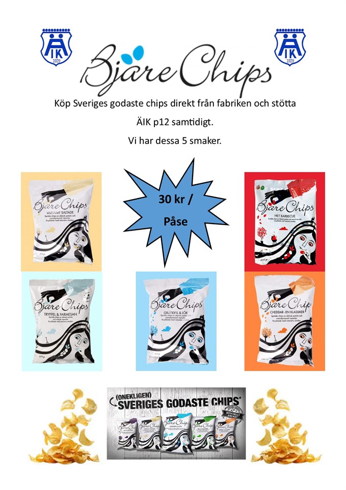 Nu har vi fått leverans av Bjäre Chips som vi kan sälja för att fylla på lagkassan. Förra gången var detta en succé och vi räknar med att det blir även denna gång. Vi har 5 smaker Varsamt Saltade Gräddfil & Lök Cheddar Tryffel & Parmesan Barbecue Till skillnad från förra gången så har vi redan fått leverans vilket gör att ni kan leverera till era kunder snabbare. Ta beställningar och hämta hos Christian nästa torsdag den 5e dec efter 1630. Ni behöver inte skicka in vad ni sålt utan det skriver Christian upp när ni hämtar. Hör av er om det är några frågor. Vi gör detta för att bygga upp lagkassan så att vi kan hitta på grejer med killarna. Lycka till med försäljningen! P-2012 28 nov 2024 0kommentarer