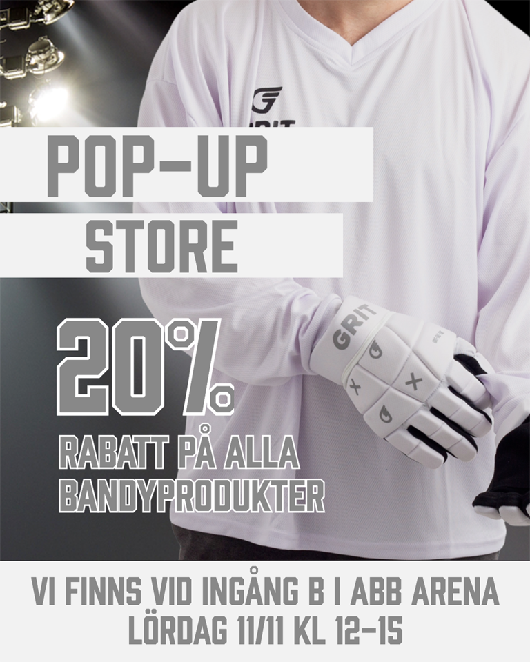 På lördag 11/11 mellan kl 12-15 finns bandyleverantören Grit på plats och säljer bandyutrustning till 20% rabatt på ordinarie priser. Bland annat finns det möjlighet att köpa uppskattade Grit-tac-toe handsken, bandybyxorna elapants och skridskor från TRUE. Grit kommer hålla till vid ingång B i ABB Arena. Betalning sker via swish. Välkomna