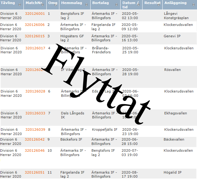 Som ni säkert hört eller läst så är vår seriestart uppskjuten till i mitten på Juni på grund av Corona viruset. Om serierna kommer igång då kommer de endast att spelas som en enkel serie så det blir klart färre matcher den här säsongen för våra två lag. Just nu är det även stopp för att spela träningsmatcher men det kan komma att ändras så vi får se vilka av kommande träningsmatcher som kan genomföras. Herrar 6 apr 2020 0kommentarer