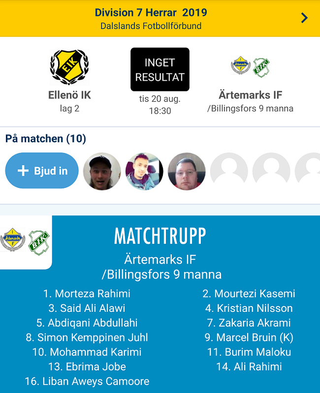 Ikväll har B-laget bortamatch mot Ellenö IK B kl 18:30. Följ liverapporteringen från matchen via min fotboll. Herrar 20 aug 2019 0kommentarer
