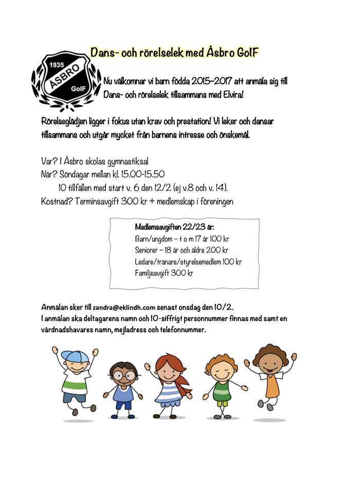 Vi startar nu dans- och rörelselek för barn födda 2015-2017! Anmälan skickas till zandra@eklindh.com I anmälan ska deltagarens namn och 10-siffrigt personnummer finnas med samt en vårdnadshavares namn, mejladress och telefonnummer. Dans 2012-2017 1 feb 2023 0kommentarer