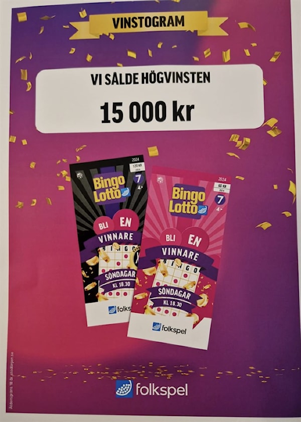 Denna vinst är ifrån bingolotterna på uppesittarkvällen som såldes inom föreningen.