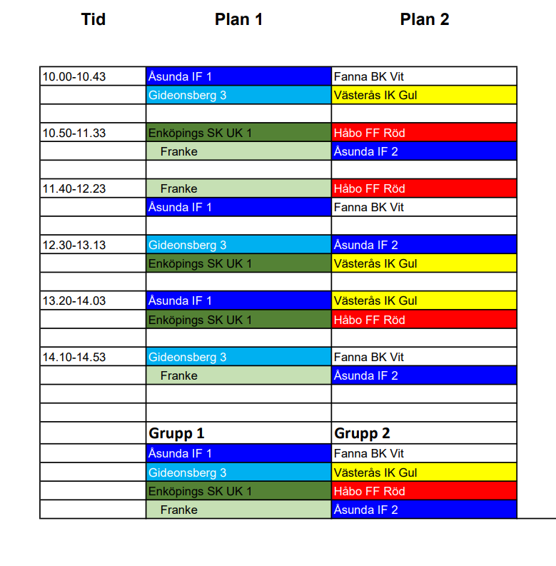 • Lagindelning och spelschema Söndag