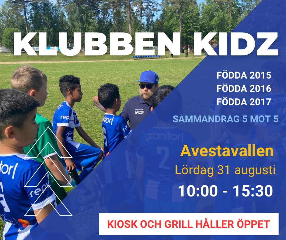 Lördag 31 augusti blir det en heldag med fotbollsmatcher på Avestavallen, för Klubbens yngre spelare. Det kommer att spelas totalt 32 matcher mellan kl 10:00 och 15:30, för barn i lågstadieåldern. Kiosk och grill kommer att vara öppet under dagen. Så passa på att ta er ner till Avestavallen på lördag och handla kaffe, godis eller en hamburgare; samtidigt som ni får chansen att se massor av spännande fotbollsmatcher. Kom och var med att heja fram Klubbens framtid! Spelschema för dagen finns här: Spelschema 31/8-24