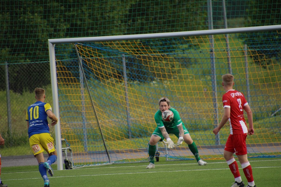 Efter att tidigare under säsongen suttit på bänken fick målvakten Sebastian Lundvall göra säsongsdebut mot Årsunda när han med kort varsel hoppade in i mitten av första halvleken, sedan Malik Abdulrahman blivit frilägesutvisad. Naturligtvis en ganska otacksam uppgift. -Det var lite nervöst, men samtidigt är det bara komma in och pang på, säger Lundvall som förstås hade hoppats på en mer tacksam uppgift när han kom in. -Det är ju inte det optimala och få hoppa in med en man mindre efter halvtimme. Klubben gjorde trots man fick spela med decimerat manskap stora delar av matchen en helt okay insats. -Jag tycker vi spelar med bra fart med en man mindre. Vi kände att vi inte var mycket sämre än dem. Men det är ju svårt när de har en fri hela tiden. -Vi springer kopiöst och sliter. Vi skapar också chanser, så det är lite frustrerande. Hemmalaget tog ledningen med 1-0 en bit in i andra halvlek. Ett mål som Sebban menar det inte var så mycket att göra något åt. -De har en snabb vänstermittfältare som var duktig. Han var svår att stoppa och kom runt på kanten, och passade in till mitten (till Noah Sjöstrand). Jag vet inte vad jag kunde gjort annorlunda. Hur tycker du det kändes för egen del? -Jag fick göra några fina räddningar. De hade en riktigt bra chans i första med en som var fri i straffområdet, man jag fick upp foten. Sedan hade de också något friläge. Avesta jagade ett kvitteringsmål och i 90 minuten på en hörna flyttade hela laget upp, inklusive Lundvall, i ett sista desperat försök. -Orre (Albert) fick ett skottläge, men bollen studsade på en av deras spelare och han blev fri från halva planen. Lundvall, som värvades från Skogsbo-Avesta inför säsongen, har tidigare fått nöja sig med spel i Klubbens U-lag i division 7. -Klart det är skillnad, men jag tycker jag gör en bra match idag och det känns som jag håller, säger 33-åringen som redan 2012 spelade i trean. Trots förlusten kan vi ta med oss vi spelade jämnt stora delar av matchen, även med en man mindre. -Vi spelar bra. Det gäller bara att vi börjar göra mål. Spelmässigt är ju de inte så j*a mycket bättre. Nästa match, spelas på torsdag, när Huge väntar på Avestavallen. I en haltande tabell ligger AAIK tre poäng före Huge, som har en match mindre spelad. -Då finns det inget annat än tre poäng. Vi behöver vinna den, men det blir tufft som i alla matcher. Spelmässigt är det bra, det är bara det sista lilla som behövs för att göra mål, avslutar Lundvall. BILDEN: Sebastian Lundvall gjorde en bra match efter fått hoppa in i första havleken sedan Malik Abdulrahman blivit utvisad. Foto: Pirjo Korhola.
