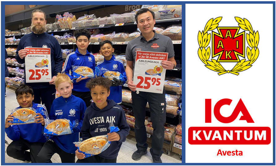 Från och med måndag 29/4 och veckan ut så kommer ICA Kvantum i Avesta att ha ett lite annorlunda erbjudande i butiken. För varje såld jubileumskaka skänker de 2 kr direkt till oss i Avesta AIK! På så sätt kan du njuta av gott bröd samtidigt som du bidrar till vår förening. Gäller hela vecka 18. Så passa på att handla massor av gott bröd under veckan. Stötta dem som stöttar oss ❤️ 💙 ICA Kvantum Avesta