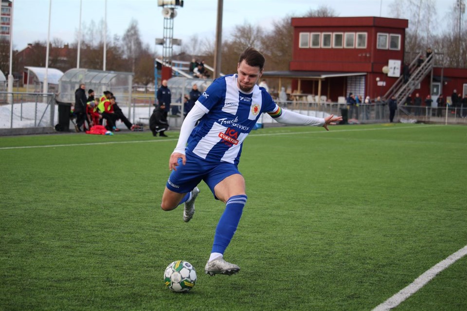 Avesta AIK imponerade när man körde över division 4-laget Syrianska IF Kerburan med 7-0 (4-0). Inte helt oväntat var hemmadominansen stor, där ”Klubben” under första halvleken visade upp säsongens bästa spel. -Vi är överlägsna och rullar boll fint, och kommer till farliga målchanser stort sett hela matchen. Vi har tränat mycket på hur vi ska bygga upp anfallen, hur vi ska ta löpningar, och lägga sista bollen, säger en av ”Klubbens” målskyttar Philip Bergstrand efter matchen. Första halvleken handlade nästan uteslutande om Avesta som förutom fyra vackra mål, kunde gjort ett par ytterligare på alla chanser hemmalaget radade upp. Redan efter sex minuter visade Albert Orre klass, när han på Axel Östbergs precisa långboll, tog bollen från kanten, gick in centralt och tryckte in bollen i bortre, bakom en chanslös bortamålvakt, fram till 1-0. Med ett rörligt spel, där alla löpte mycket, och vårdade bollen efter marken, tilläts Syrianska knappt låna bollen. Jakob Svedlund, Johan Lindgren och Mergin Ramadani hade alla chanser göra mål. Just Ramadani kunde göra 2-0 efter 29 minuter, efter han fick öppet mål, efter Johan Lindgrens skott som det blev en retur på. Fagersta Södra förvärvet är inte den snabbaste, men kompenserar det med sin fysik, och målfarlighet. Sista fem av halvleken utökade först Orre 3-0 när han snyggt chippade in bollen, och 4-0 kom från Philip Bergstrand. -Vi bygger upp anfallet bra, och får en bra spelvändning, Viktor (Hansson) kommer hämtar bollen, sedan spelar han ut till Mergim, som förlänger till mig, så kan jag bara lägga in bollen, säger ”Bersa”, som tycker det var AAIK som var bra, och inte Syrianska som var dåliga: -De är ett bra lag vi möter, men vi gör en extremt bra match. Säkra bakåt och har ett väldigt bra kombinationsspel. Vi har en extremt bra offsidelinje, och jag vet inte hur många offside de springer. Vi är det bättre laget i nästan 90 minuter och har bra passningar sista tredjedelen. Vi fortsatte att vara det bättre laget i andra halvlek, även om laget inte riktigt nådde samma höjder som i första. Det skulle ändå inte hindra oss från att göra ytterligare tre mål. Målvakten Malek Abdulrahman, som bara ett par gånger i första halvlek fick röra bollen, stod för en bra räddning tidigt i den andra halvleken, när han parerade till en hörna. Kvarten spelad avslutade Ramadani i stolpen efter förspel från Bergstrand. Under den andra halvleken bytte vi in hela vår bänk, med Simon Tella, Elliot Möllersten, Mohammed Hasoni, Benjamin Larsson, Taher Saleh, Tony Nilsson och Theo Hildensjö. Ett gäng som i princip är lika bra som de som startade. -Jättebra och bred trupp, och när alla är hundraprocent är vi superbra, berömmer Philip Bergstrand. Inbytte Taher Saleh satte bollen i nättaket med sin första bollkontakt, efter Orre stått för framspelningen, som betydde 5-0 efter 61 minuter. Jakob Svedlund utökade till 6-0, innan inhopparen Benjamin Larsson i slutet satte 7-0 efter Mohammed Hasoni vackert dribblat bort ett par Syrianska Kerburan spelare. Rutinerade Rasmus Lindgren spelade första halvleken, även om han enligt egen utsago kanske kunde spelat hela matchen. -Jag har haft bekymmer med vaden under säsongen. Innan den här matchen spelade jag bara i 60 minuter mot Enköping. Jag tycker ändå jag gör det godkänt idag, säger ”Ralle”. Vad säger du ni gör bra idag? -Vi har bra fart på bollen, och en bra defensiv, och ett bra press spel. Vi vinner tillbaka bollen snabbt, och har en bra energi. Vi sätter varandra i fart. Med två veckor till segerpremiären, är Lindgren optimistisk inför den stundande säsongen. -Svårt att veta hur de andra lagen är. Men vi har ett tillräckligt bra lag för att komma på den övre halvan. Nu återstår det en match av försäsongen, när vi den 1 april möter Bullermyren på hemmaplan. -Bara gnugga på och nöta detaljer sedan försöka få vårt spel att sitta, säger Philip Bergstrand om den kommande veckan. Text Per Lindgren. BILDEN: Albert Orre blev tvåmålsskytt mot Syrianska IF Kerburan. Foto: Pirjo Korhola. Avesta AIK-Syrianska IF Kerburan 7-0 (4-0) Målen: 1-0 (6) Albert Orre, 2-0 (28) Mergim Ramadani, 3-0 (40) Albert Orre, 4-0 (45) Philip Bergstrand, 5-0 (50) Taher Saleh, 6-0 (69) Jakob Svedlund, 7-0 (89) Benjamin Larsson Varning: Avesta: Johan Lindgren Hörnorr: 6-4 Publik: Ca 50 (Avestavallen) AAIK: Malik Abdulrahman-Filip Hedblom, Axel Östberg (Tony Nilsson 65), Johan Lindgren, Philip Bergstrand (Jack Franzén Olsson 60)-George Minassian (Hasoni Mohammed, 60), Rasmus Lindgren (Simon Tella 46), Jakob Svedlund (Elliot Möllersten 75), Viktor Hansson (Taher Saleh, 60)-Albert Orre (Theo Hildensjö 75), Mergim Ramadani (Benjamin Larsson 65).