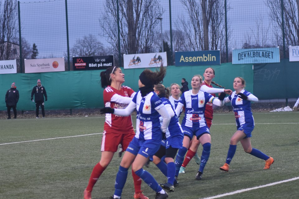 Det blev en målrik tillställning på Lärkans konstgräs i Avesta AIK:s första match för säsongen. Hela tolv mål fick publiken se när hemmalaget Sala FF kunde dra det längsta strået och vinna med 7-5 (2-2). -Vi är nöjda över att göra många mål och skapa många chanser, säger Avestatränaren Keitty Nizi. Tremålsskytt i Avesta AIK blev Elsa Edh Eriksson, medans Nora Blixt gjorde två. Hemmalaget tog ledningen med 2-0 i första halvleken, men Avesta kunde kvittera till 2-2 innan pausvilan och hade bud på fler mål. -Vi hade många frilägen och skapade mycket i början av matchen, säger Nizi. -Det var ett böljande spel, fortsätter Avestabossen som menar det fanns delar av spelet han vill lyfta fram. -Vi får till det när vi kan behålla lugnet och tålamodet. När vi ger det tid och hittar rätt i positionerna. Sju insläppta mål betydde det finns saker att jobba med i defensiven. -Vi får jobba med att kontrollera spelet. Keitty Nizi vill efter ge ett extra plus i matchen till rutinerade mittbacken Julia Lindström. -Hon tar ett stort ansvar. Avesta AIK tar emot Norrby SK i sin nästa träningsmatch den 7 april kl 12.00. BILDEN: Julia Lindström, Alexandra Simonsson och Magda Olsson är tre av Klubbens mest rutinerade spelare. Foto: Niclas Bergvall. Sala FF-Avesta AIK 7-5 (2-2) Mål, Sala: Maja Waldemarsson 2, Malin Johansson 2, Lovisa Call, Amanda Ericsson, Thea Moden. Avesta: Elsa Edh Eriksson 3, Nora Blixt 2. Domare: Jihad Akhras. Avesta AIK: Fanny Krona-Magda Olsson, Cajsa Sölvestad, Julia Lindström, Isabell Danielsson-Elsa Edh Eriksson, Alexandra Simonsson, Linn Andersson, Nora Blixt-Fredrika Svanström, Astrid Thorsberg. Ersättare: Idde Fargve Vernersson, Lovis Fargve Vernersson, Thea Steingruber.