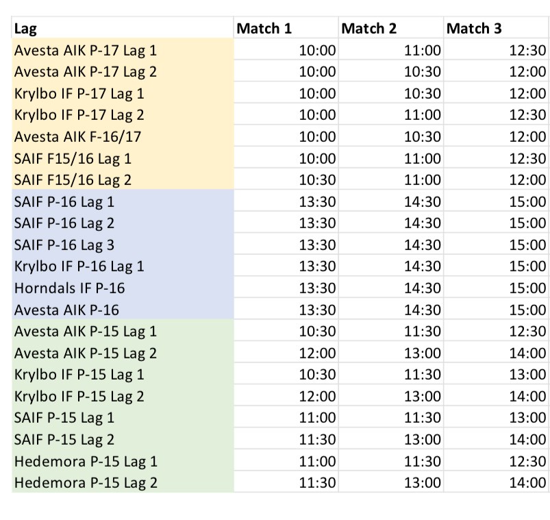 Spelschema sammandrag Lördag 31/8-24