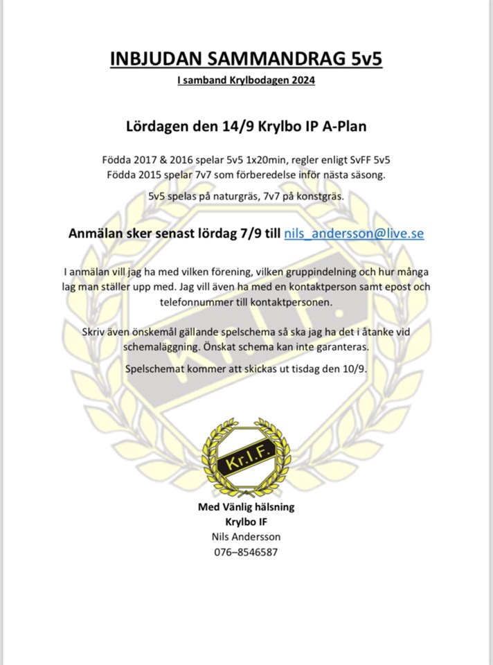 Se inbjudan och anmäl era lag till Nils i KRIF. Gäller födda 2015,2016 samt 2017