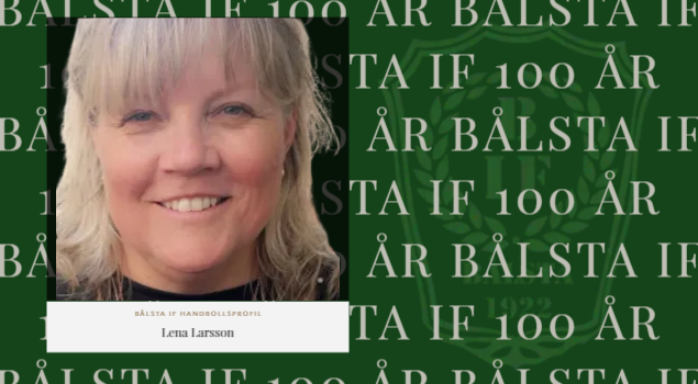 Namn: Lena Larsson Ålder: 56 Antal år som aktiv i handbollen: 42 Idag aktiv i: Bålsta If Position/roll: idag lagledare men har varit både spelare och tränare i föreningen. Antal år i Bålsta IF: 41 Bästa Bålsta IF minne: När Bålstas damer kvalade och gick upp i division 2, samt de olika cuper jag deltagit i som spelare under min uppväxt. Är så tacksam för den gemenskap handbollen gett mig. vi är ett gäng som håller ihop från vår tid som spelare på 90-talet En tränare/ledare som varit viktig för mig: Jan och Mari-Anne Hornö Mitt bästa råd till unga handbollsspelare: Ha kul! Ta vara på gemenskapen. Hälsning till Bålsta IF: Tacksam att få vara del av en så fin förening som har siktet framåt där även alla som vill får vara med #Bålstaif100år