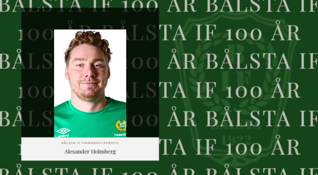 Namn: Alexander Holmberg Ålder: 26(fyller 27 i maj) Antal år som aktiv i handbollen: vet inte exakt när man börjar bollskola/boll och lek men cirka 20 år Idag aktiv i: Hammarby IF Position/roll: Målvakt Antal år i Bålsta IF: från boll och lek fram till gymnasiet Bästa Bålsta IF minne: finns väldigt många härliga minnen från olika cuper osv. Men antingen något år från järnvägen cup eller när vi hade två lag mot varandra i vintrosa beachhandbolls finalen En tränare/ledare som varit viktig för mig: från början var det min pappa som var där under många år men på senare år hjälpte Dagge Lundin till mycket under gymnasietiden Mitt bästa råd till unga spelare: se till att njuta och ha roligt ute på handbollsplanen både under matcher och träningar. Med glädje på handbollsplanen kommer man ständigt sträva efter att vilja utvecklas. Hälsningar till Bålsta IF: Bålsta IF kommer alltid ha en stor betydelse för mig då det var där jag la grunden till vart jag är idag, har mycket att tacka för den tiden.